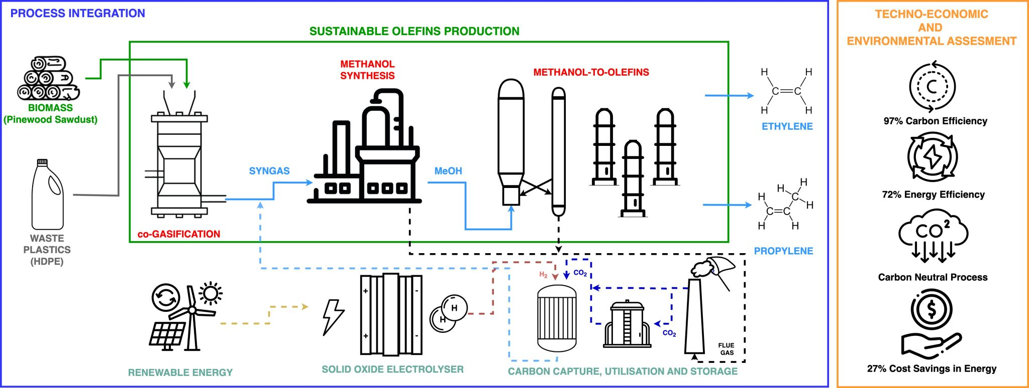 Techno-economic and environmental assessment of sustainable thermochemical pathways for olefins production promoting carbon circularity